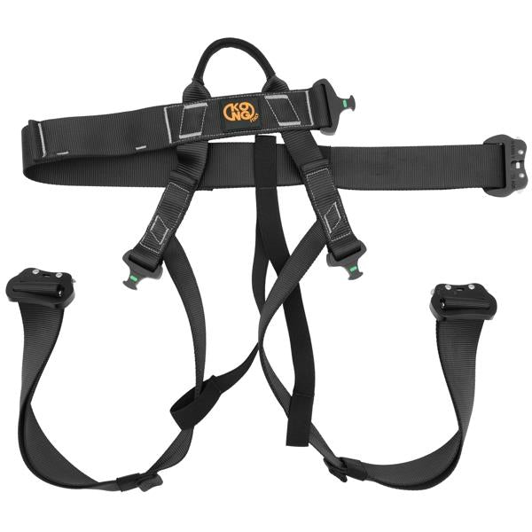 Der Hüftgurt sowie die verjüngten Beinschlaufen bestehen aus hochfestem 44-mm-Polyester-Gurtband und bieten eine ausgewogene Kombination aus Stabilität und Tragekomfort. Drei automatische Schnallen an Taille und Beinschlaufen ermöglichen eine vollständige Öffnung des Systems und damit ein schnelles Anlegen, auch über Einsatzbekleidung.